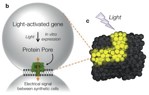 Engineering cellular communication between light-activated synthetic cells and bacteria. J.M.Smith, D.Hartmann, M.J.Booth. Nature Chemical Biology, 19, 1138 (2023) DOI: 10.1038/s41589-023-01374-7