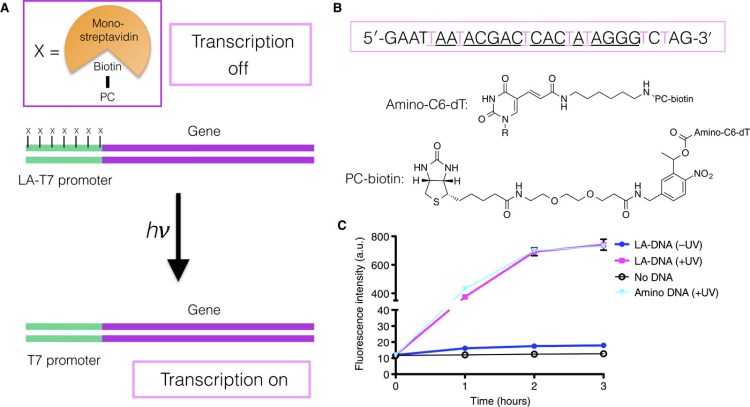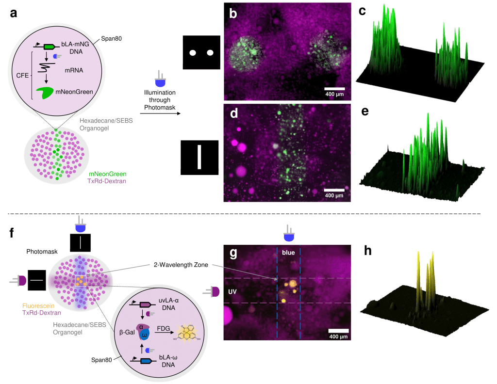 Precise, orthogonal remote-control of cell-free systems using photocaged nucleic acids. G.Mazzotti, D.Hartmann, M.J.Booth. Journal of the American Chemical Society 145, 17, 9481 (2023) DOI:10.1021/jacs.3c01238